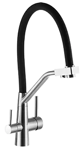 Отдельный кран с тонким изливом устанавливается на столешницу или мойку. Изготавливается из латуни с хромированным покрытием или нержавеющей стали. Не содержит сложных механизмов — отказы связаны преимущественно с механическим повреждением.