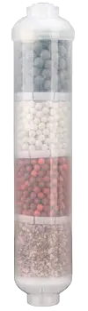 Вода после обратного осмоса имеет низкую минерализацию (TDS 5–20 мг/л). Минерализатор — картридж с кальцитом или доломитом — добавляет в воду кальций и магний до уровня 30–50 мг/л, что улучшает вкусовые качества без снижения безопасности.