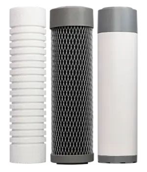 Префильтры предотвращают преждевременное засорение мембраны механическими примесями и хлором. Стандартная конфигурация включает три ступени: